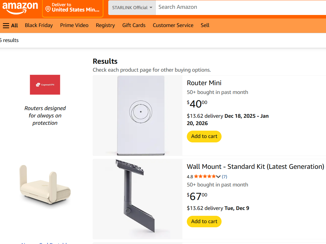 A vásárlók mostantól közvetlenül az oldalról vásárolhatnak bizonyos Starlink-kiegészítőket, például a Wi-Fi routert, a legtöbb termék pedig a Prime egyik napról a másikra vagy egynapos szállítással érhető el. A DISHYTech nevű áttekintő webhely először a hónap elején szúrta ki a hivatalosnak tűnő Starlink áruházat, megjegyezve, hogy úgy tűnik, hogy a Virtual Supply-n keresztül működik. Ez az oregoni székhelyű, harmadik félként működő forgalmazó különféle szórakoztató elektronikai cikkeket értékesít a nagy dobozos kiskereskedőknek, és korábban a Starlink szabványos tányérját is árulta, ami arra utal, hogy idővel több készletet is kínálhatnak.