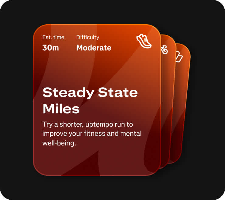 Ideális esetben az Instant Workouts célja, hogy a sportolók szinte teljesen mentesüljenek az edzéstervezés terhe alól. A felhasználók négy különböző edzésmód közül választhatnak: Build (Építés), Maintain (Fenntartás), Explore (Felfedezés) és Recover (Gyógyulás). A Build valószínűleg intenzívebb edzéseket foglal magában az állóképesség javítása érdekében. A Maintain a teljesítmény fenntartására szolgál, míg a Recover az olyan felhasználók számára jelent lehetőséget, akik már erősen megterheltek vagy fáradtak, de még mindig szeretnének egy könnyű (regeneráló) edzést végezni. Az Explore új sportágak vagy útvonalak felfedezésére szolgál, hogy leküzdjék a platóni állapotokat, vagy kitörjenek egy esetlegesen stagnáló edzésrutinból.