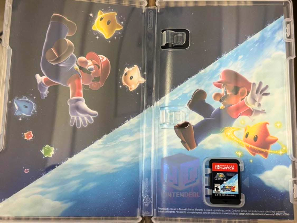 A ForeverPhysical megosztotta a grafikát az X és kijelentette: "Figyelem! Így néz ki a Super Mario Galaxy 1 és 2 belső dobozának művészete és a kazetta!" A képeket olyan fotók kísérik, amelyeken a kazetta egy átlátszó tartóban látható.