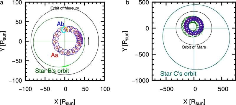 A rendszer legnagyobb tömegű csillaga az Aa, amely nagyobb tömegű és forróbb, mint a Nap. Ez a helyzet a közelben található másik két égitest esetében is. A C csillag tömege és hőmérséklete azonban a Napéhoz hasonló, keringési ideje pedig 1046 nap. Ez a felfedezés tehát világújdonság, és lehetővé teheti a tudósok számára, hogy hasonló rendszereket fedezzenek fel az univerzumban.
