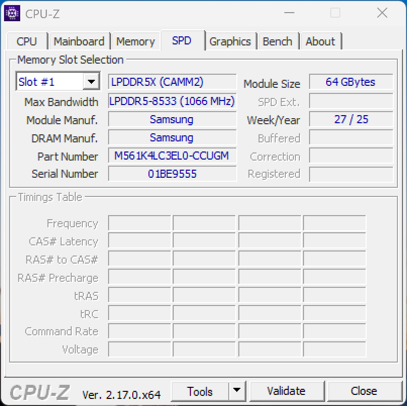 Összességében a karbantartási lehetőségek jók, a RAM pedig a CAMM2 modulnak köszönhetően cserélhető, bár a maximális támogatott kapacitás 64 GB-ra korlátozódik. Két M.2-2280-as SSD-hely is van (PCIe 5.0), és az akkumulátor is cserélhető. A Wi-Fi modul viszont be van forrasztva.