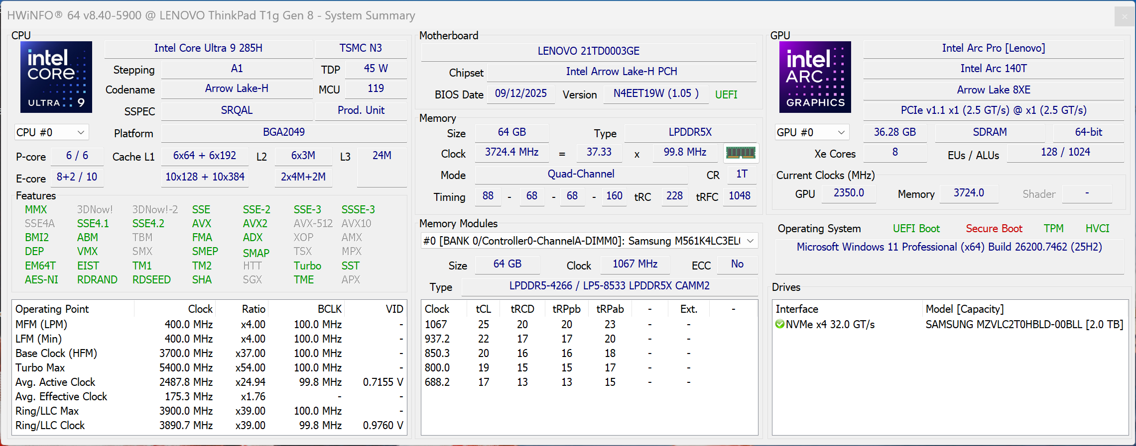 | Lenovo ThinkPad T1g Gen 8 21TD003GE Intel Core Ultra 9 285H ⎘ NVIDIA GeForce RTX 5070 Laptop ⎘ 64 GB Memória, 2048 GB SSD | Amazon: 1. $3,839.06 Lenovo ThinkPad T1g Gen 8 21... 2. $3,099.99 Lenovo ThinkPad P1 Gen 7 Wor... 3. $5,532.00 Lenovo ThinkPad T1g Gen 8 21... List Price: 4500€ | 1.9 kg | 15.8 mm | 16.00" 3200x2000 236 PPI Tandem-OLED | |