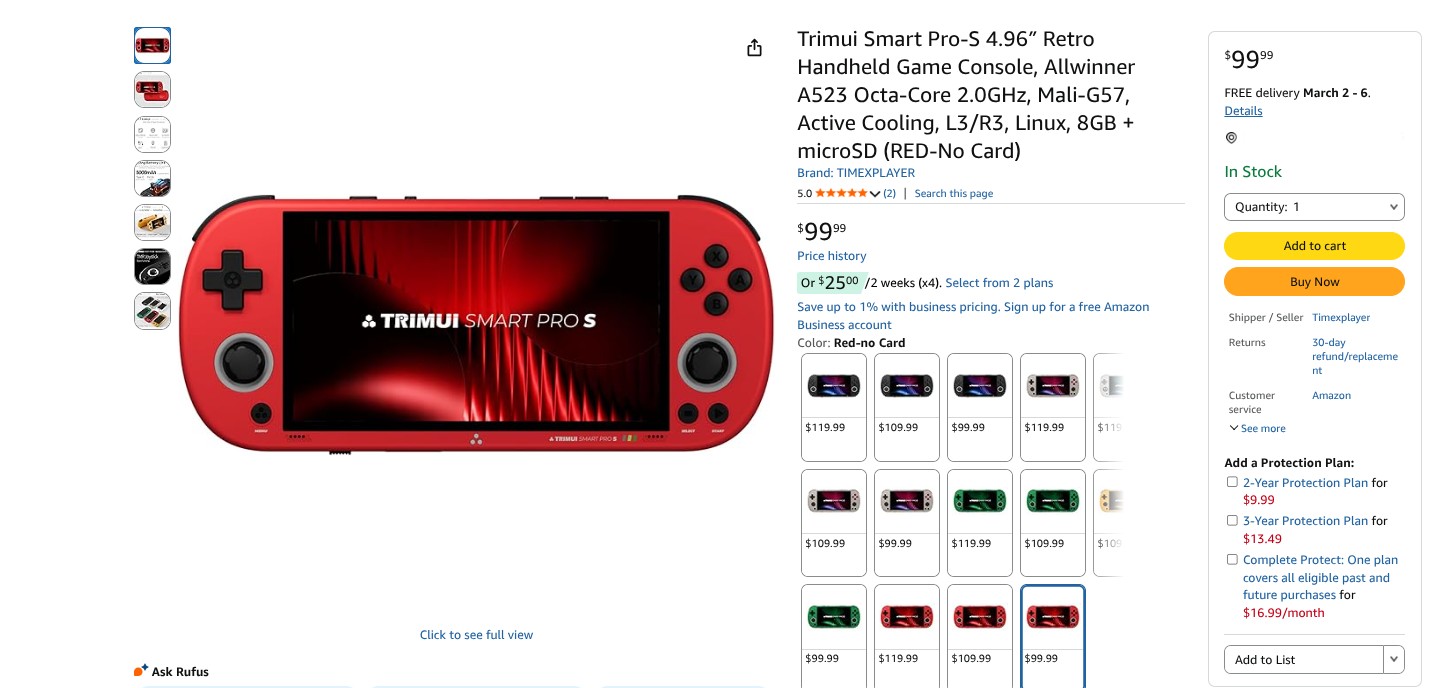 Ellentétben a Ayaneo Pocket Air Mini amelyet a hivatalos Ayaneo üzlet árul és az Amazonról szállít, a TrimUI Smart Pro S-t egy harmadik fél, a Timexplayer nevű eladó értékesíti és szállítja. Szerencsére a vásárlók 30 napos visszatérítésre vagy cserére jogosultak, ha problémák merülnek fel.