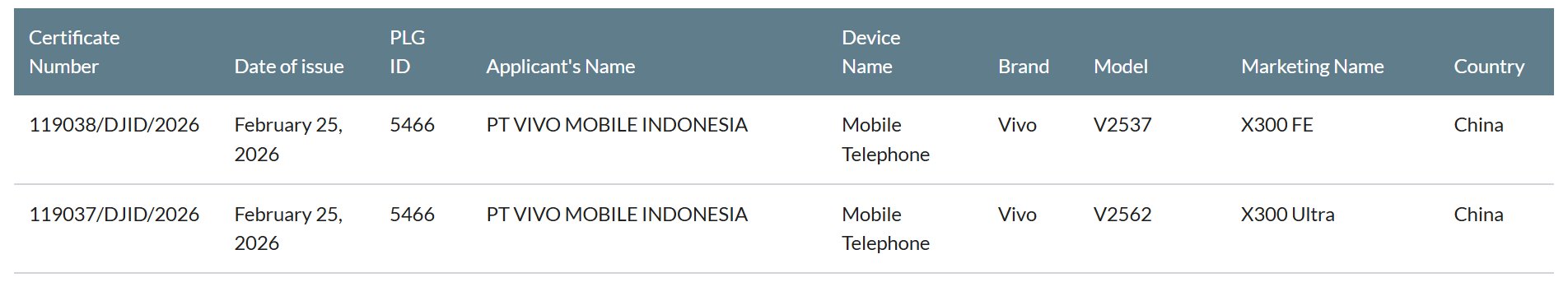 Az X300 Ultra mellett a Vivo X300 FE is átesett az SDPPI tanúsításon a "V2537" modellszámmal Nemrégiben az X300 FE is megjelent a Geekbench snapdragon 8 Gen 5 processzorral. Várhatóan ez egy átnevezett változata lesz a Vivo S50 Pro Mini amely Kínában jelent meg.