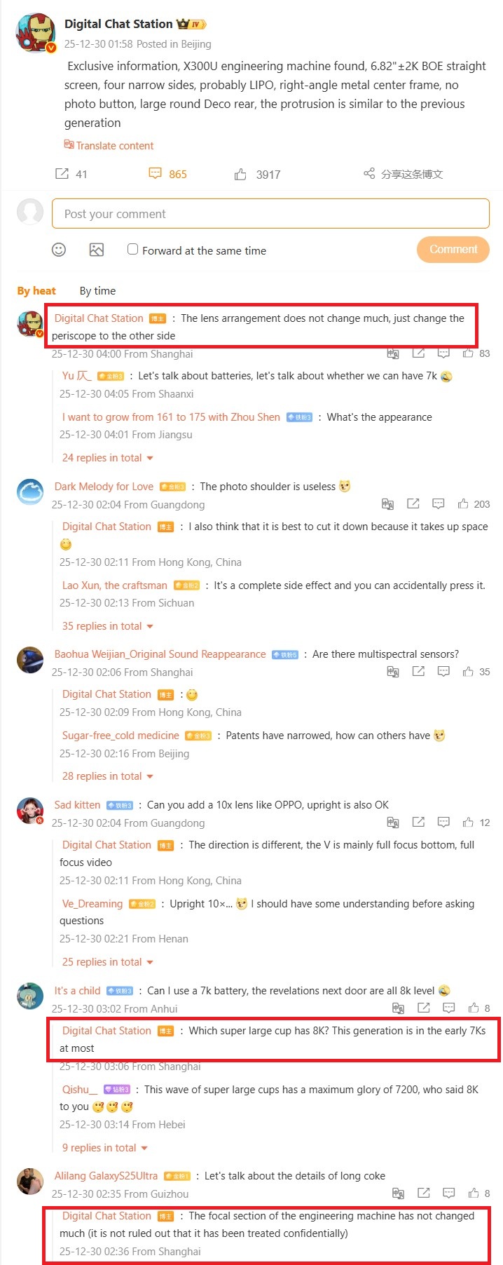 Az EEC adatbázisaiból származó jó hírek mellett a rendkívül megbízható kiszivárogtató Digital Chat Station néhány további specifikációt is közölt a Vivo X300 Ultra-ról. Ahogy mi korábban már beszámoltunk róla, a BOE 6,82 hüvelykes OLED kijelzője lapos, vékony keretekkel és lapos fémkeretes élekkel rendelkezik, de a jelek szerint már nem rendelkezik dedikált fényképezőgép-kioldógombbal. Egyes felhasználók számára ez minden bizonnyal jelentős visszalépés lenne a Vivo X200 Ultra-hoz képest. A Vivo itt talán a Xiaomi példáját követi, hiszen a Xiaomi 17 Ultra Leica Edition nem rendelkezik zárógombbal, mivel a Xiaomi ehelyett opcionális kiegészítőket szeretne értékesíteni.