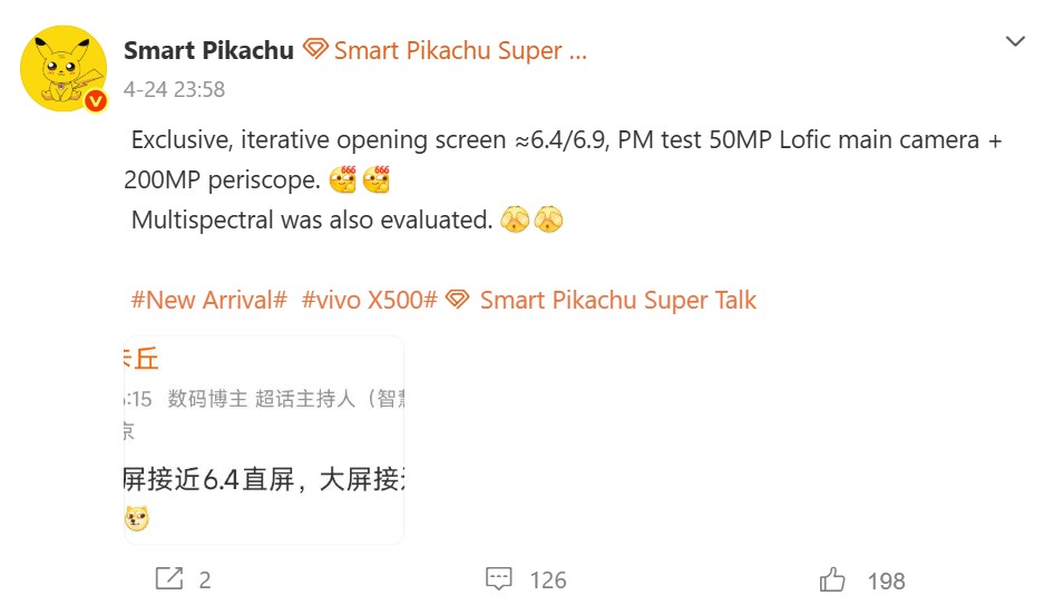 Egy másik érdekes részlet a kiszivárogtatótól, hogy a Vivo követheti a Apple és a Xiaomi-t, és két képernyőméretben adhatja ki az X500 Pro-t, legalábbis Kínában: egy kompaktabb, 6,4 hüvelykes normál változatban és egy nagyobb, 6,9 hüvelykes Pro Max változatban