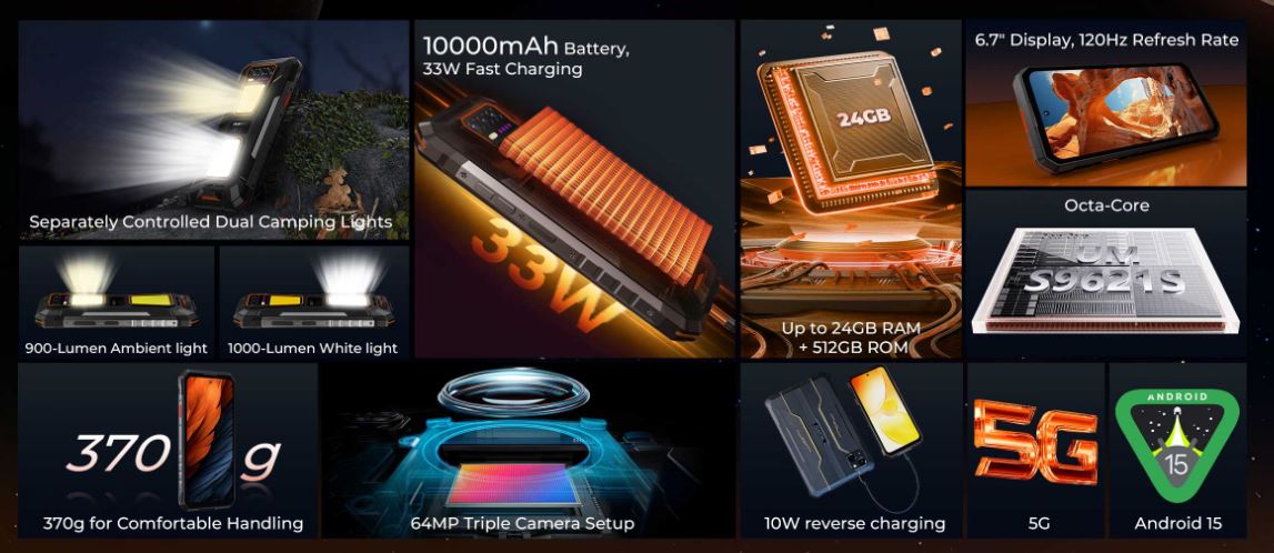 Akárhogy is, az Oukitel okostelefon egy 10 000 mAh-s akkumulátorral van felszerelve, amely akár 33 wattal is tölthető. Támogatja a 10W-os fordított töltést is, így power bankként is használható. Ráadásul a WP58 Pro-t egy nyolc maggal és 5G támogatással rendelkező SoC hajtja, így nem korlátozódik a 4G LTE-re, mint néhány más olcsó, strapabíró okostelefon. A többi specifikáció között 8 GB RAM található, míg az 512 GB-os tömegtároló szintén ésszerűen méretezett. A telefon alapból a Android 15 oldalon fut, és a felhasználók microSD-n keresztül bővíthetik a tárhelyet a kettős SIM-kártya foglalatok egyikének feláldozásával.