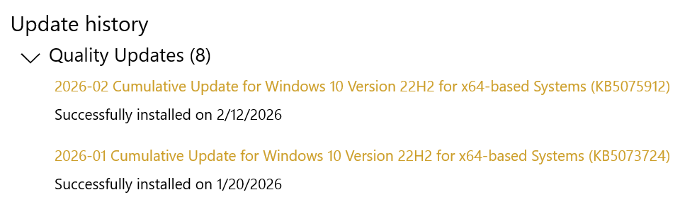 A Microsoft 2026. február 10-i, 2026-os biztonsági frissítése a Windows 10 kiterjesztett biztonsági frissítésekhez (ESU) a KB5075912 címen érhető el, amely a Windows 10 22H2 verzióját az OS Build 19045.6937-re (és a 21H2-t az 19044.6937-re) emeli.