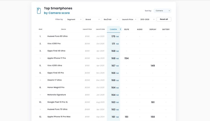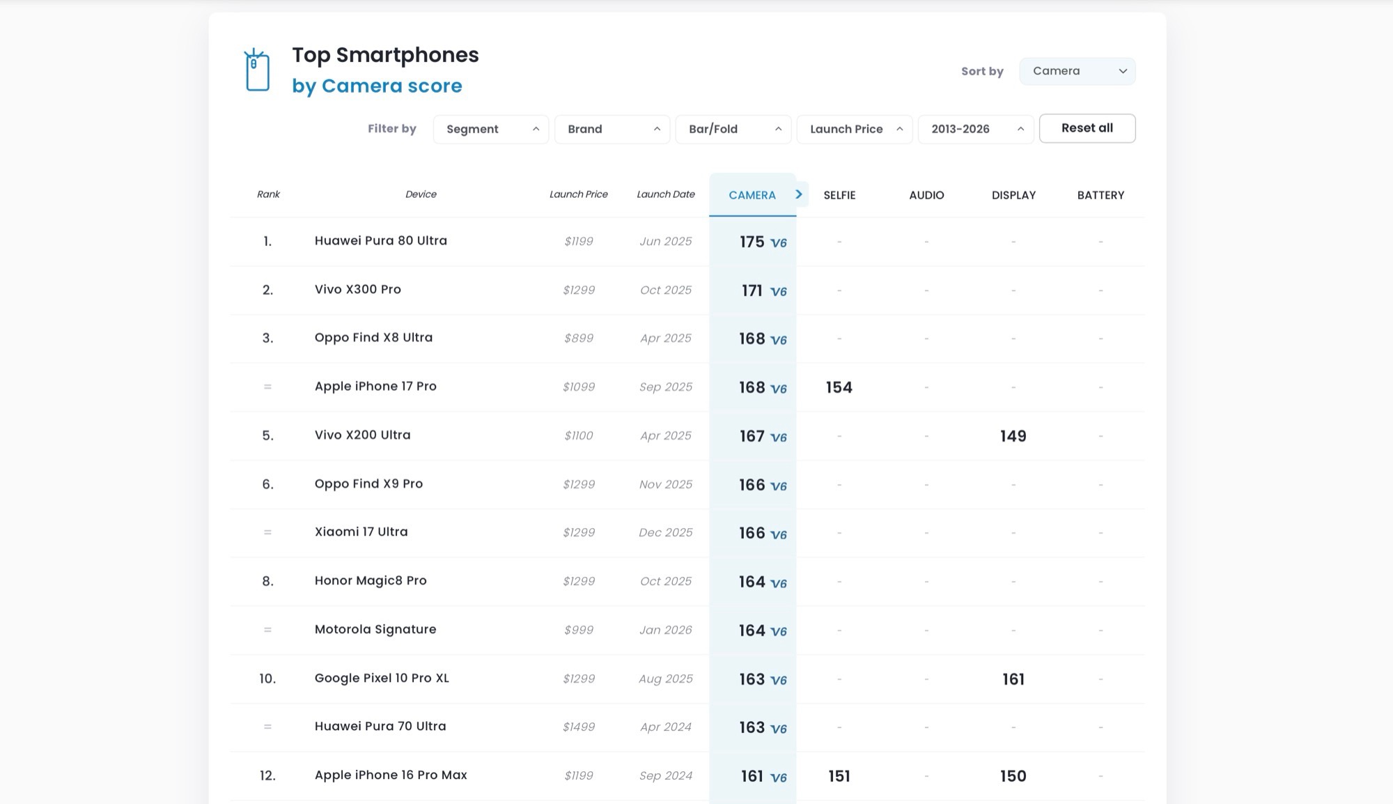 Ez a pontszám csak a hatodik helyre elég az okostelefonok jelenlegi rangsorában, a Apple iPhone 17 Promögött, amely 168 ponttal a negyedik helyen áll, és messze lemaradva a Huawei Pura 70 Ultra, amely 175 ponttal az első helyet foglalja el. Pontosabban, a Xiaomi még csak nem is kap top pontszámot egyik kategóriában sem. Az iPhone 17 Pro főként a Xiaomi 17 Ultra videóproblémái miatt van elöl.
