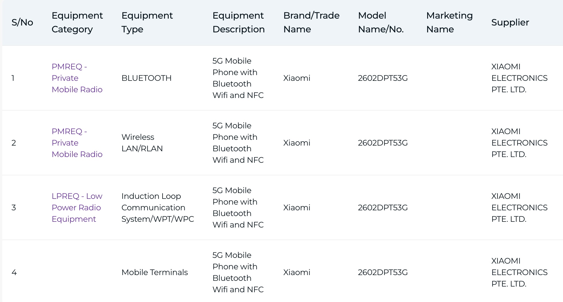 Most a következő generációs Xiaomi 17T sorozat megkapta az IMDA tanúsítványt Szingapúrban. A két tanúsított készülék a "2602DPT53G" és a "2602EPTC0G" modellszámokat viseli Egy korábbi kiszivárgás, ezek a modellszámok a Xiaomi 17T és a Xiaomi 17T Pro globális változataihoz tartoznak.