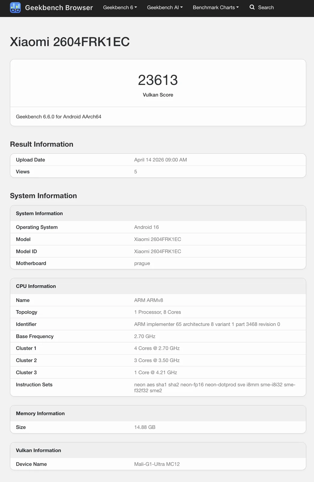 Eközben a CPU teljesítménye megegyezik azzal, amit elvárhatunk a Dimensity 9500-tól és annak okta-core chipsetjétől. Ezért a Redmi K90 Max olyan modern zászlóshajókkal vívja meg az ütéseket, mint a Galaxy S26 Ultra, Xiaomi 17 Ultra és a OnePlus 15 (jelenleg 899 dollár az Amazonon). A Geekbench azt jelzi, hogy a Xiaomi tervezi, hogy a Redmi K90 Max-ot akár 16 GB RAM-mal is kínálja.
