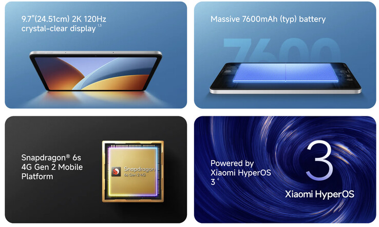 Amennyire meg tudjuk mondani, a Redmi Pad 2 9.7 átveszi az összes hardvert a meglévő Redmi Pad 2 SE-ből. A Xiaomi például Snapdragon 6s 4G Gen 2 chipsetet említ, valamint egy 7600 mAh-s akkumulátort, amely támogatja a 18 W-os vezetékes töltést. Az új táblagép 120 Hz-es IPS-kijelzővel is rendelkezik, amely 2048 x 1280-as felbontású, 16:10-es képarányú, kültéri üzemmódban akár 600 nites csúcsfényerővel.