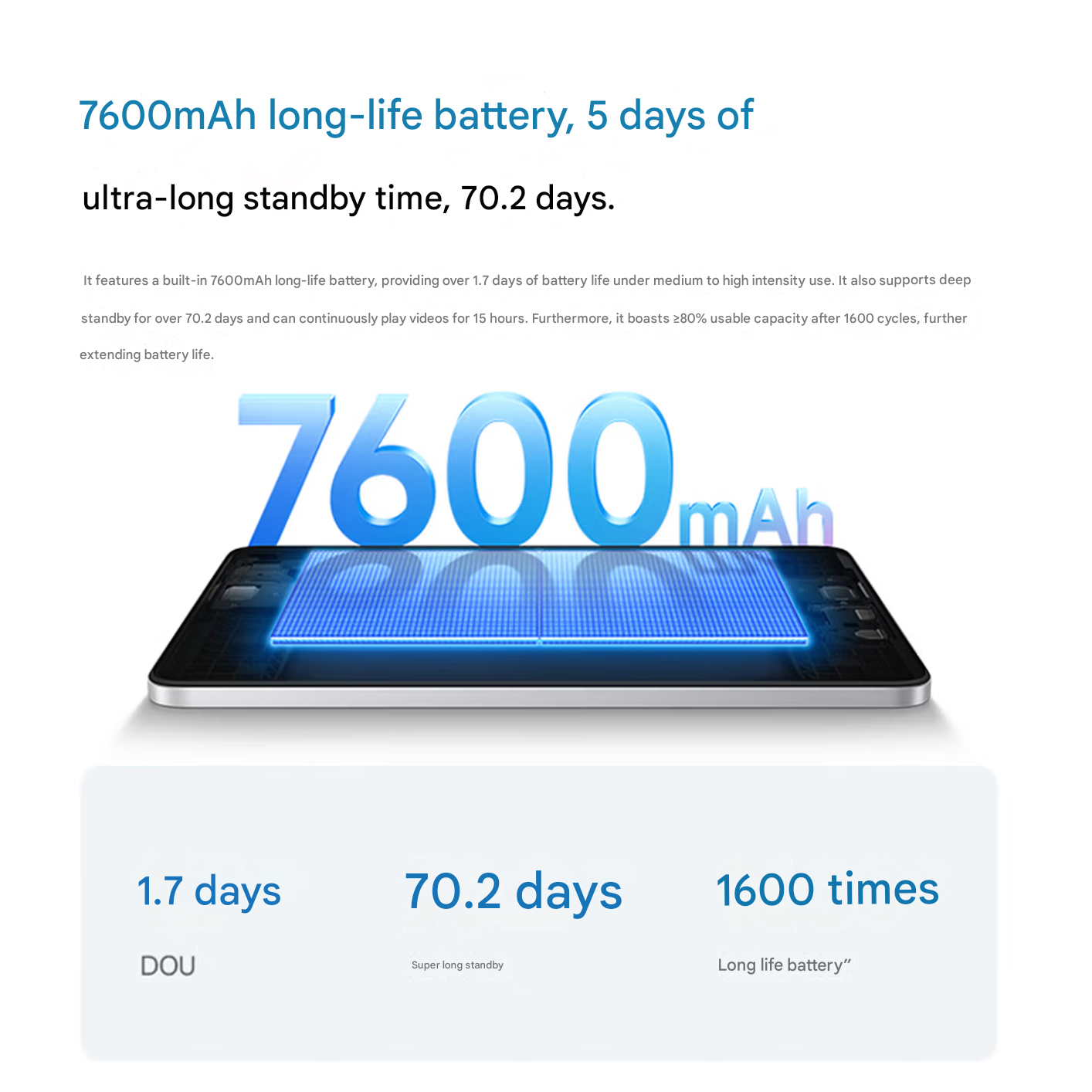 Míg a tablet kis méretű, a Xiaomi viszonylag nagy akkumulátort pakolt bele. A Pad SE 2 egy 7600mAh-s akkumulátorral rendelkezik, amely azt ígéri, hogy akár 15 órányi videolejátszást biztosít egy teljes feltöltéssel.