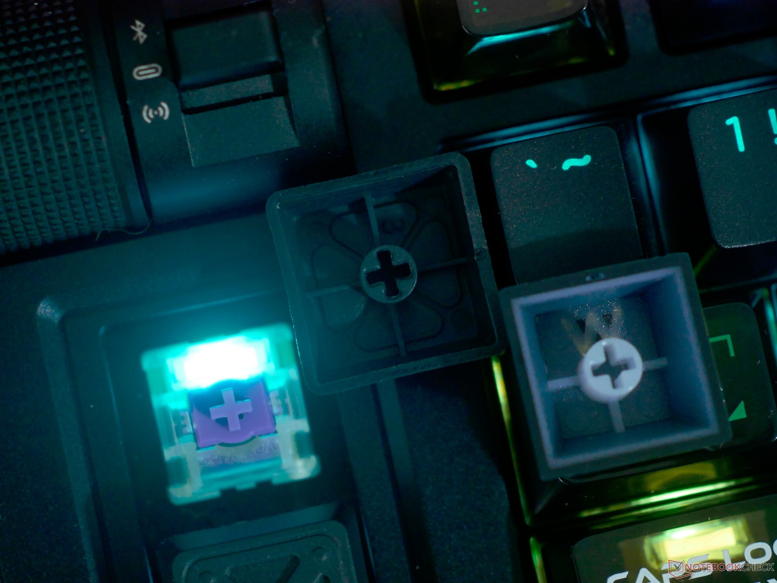 Hasonlóképpen, a billentyűzetek és a tartozékcsomag is kiváló minőségű. A billentyűkártyákon lévő feliratokat egyenletesen megvilágítja az RGB háttérvilágítás, és a fő billentyűkártyák textúrája kellemes tapintású. Az átlátszó PC-s billentyűzetkupakok fényes felületűek, ami egyesek számára kellemetlen lehet, de elég könnyen megszokható volt a felülvizsgálati időszak alatt.