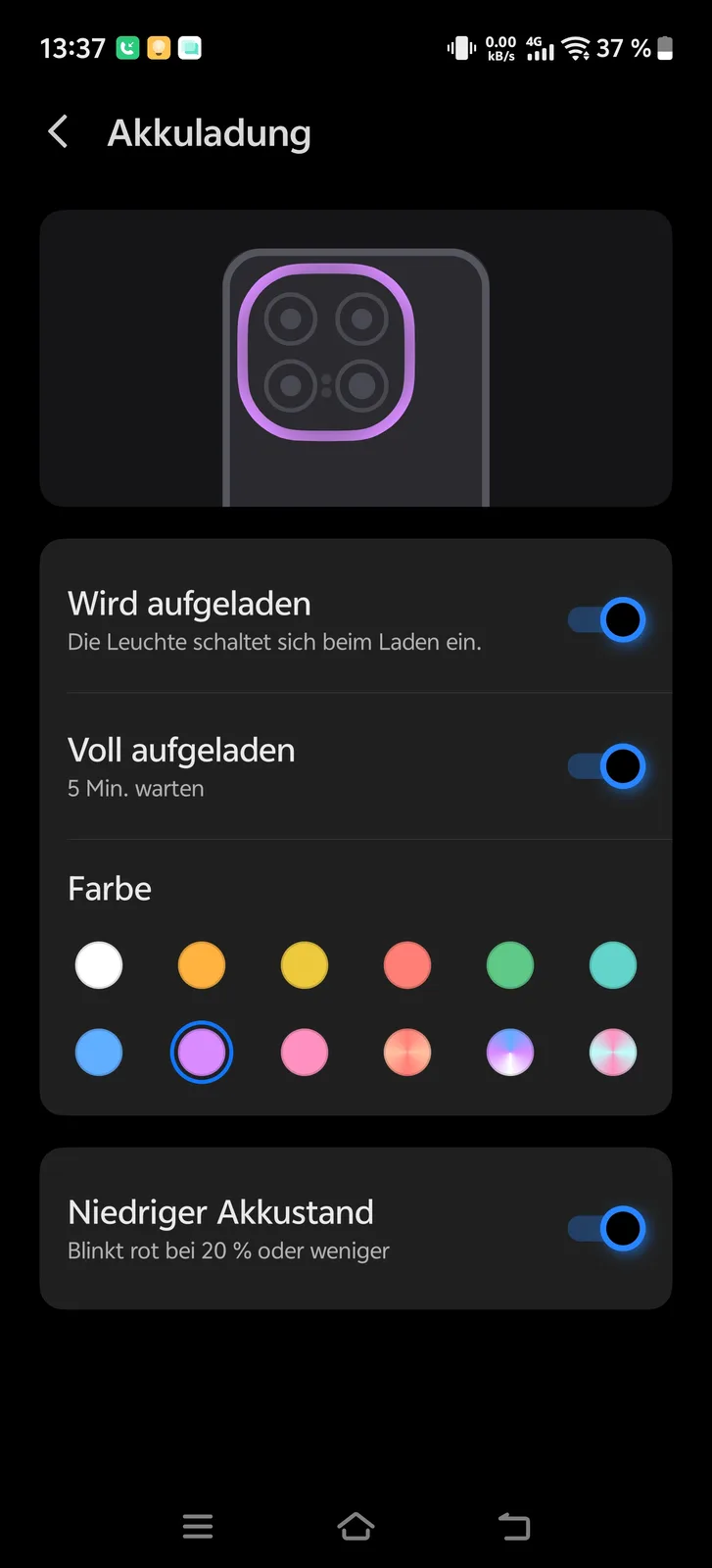 Android okostelefon színes LED-del a kamera körül