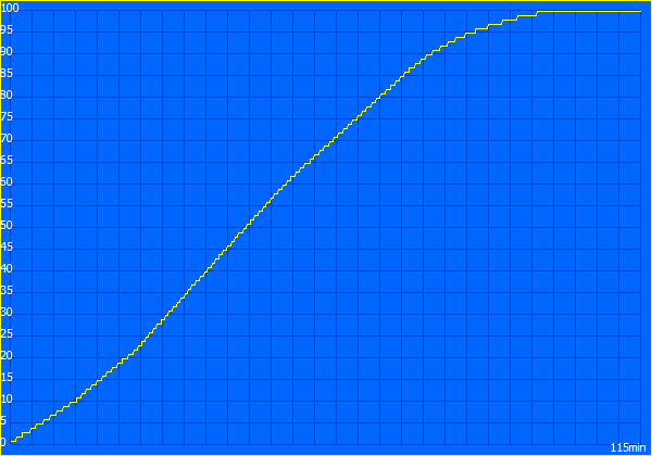 Az energiafogyasztás eléri a 65,2 W-os maximumot, ami valamivel több, mint amennyit a 65 W-os töltő képes leadni. Mivel az energiafogyasztás gyorsan lecsökken, a készüléket nem fenyegeti a használat közbeni töltésvesztés veszélye.
