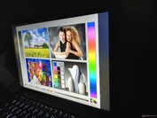 A 491 cd/m²-es átlagos fényerő a mi alacsony fogyasztású alapváltozatunkban kissé elmarad az ígért értéktől. Ez egy tisztességes panel, amely fényerő tekintetében felülmúlja a konkurencia WUXGA képernyőit, de lassú panel, hosszú válaszidővel és mindössze 60 Hz-es frissítési frekvenciával. Természetesen az OLED panel sokkal jobb, bár talán a Lenovo is tudna ennél valamivel jobb IPS panelt kínálni.