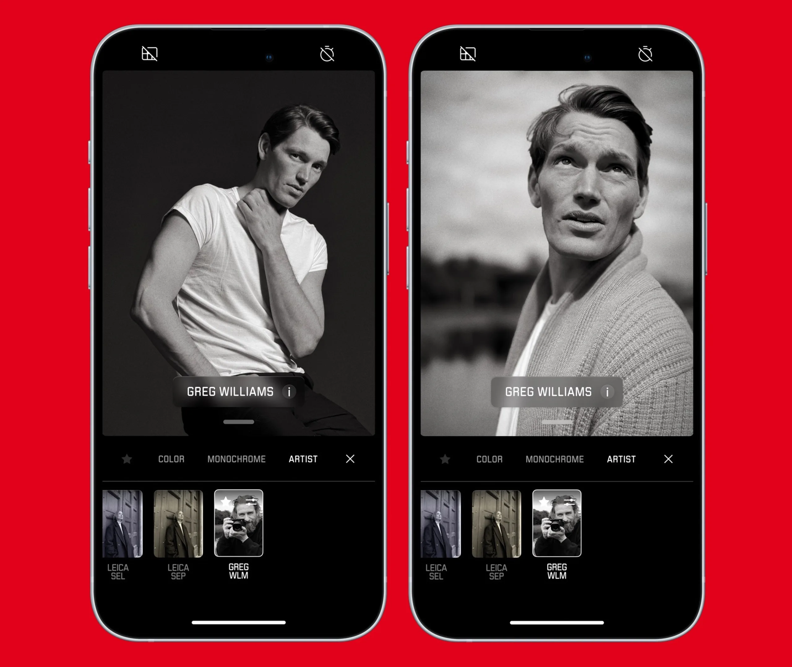 Ezek közül az első egy olyan szűrő, amelyet Greg Williams brit fotós fotói ihlettek. Ezt az Artist Look-ot a klasszikus Kodak Tri-X 400 filmre emlékeztető, nagy kontrasztú, látható képzajjal rendelkező fekete-fehér fotók jellemzik. A Leica marketingje szerint ez a megjelenés a hitelességet, a melegséget és az intimitást hangsúlyozza, elkerülve a túlzott utófeldolgozást. A megjelenést úgy is tervezték, hogy automatikusan alkalmazkodjon a különböző fényviszonyokhoz.