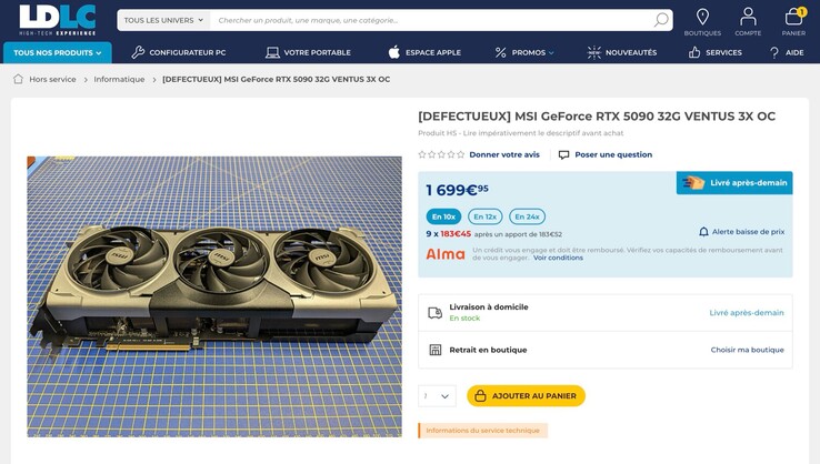 Még a legolcsóbb változatok a Nvidia GeForce RTX 5090 asztali grafikus kártya jelenleg több mint 3300 euróba kerül Európában. A francia technológiai kiskereskedő LDLC most megkezdte a hibás GeForce RTX 5090 értékesítését, amivel elméletileg pénzt takaríthatnak meg a vásárlók.