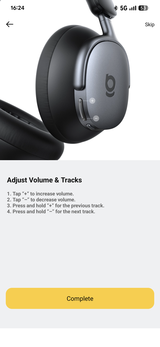 A bal oldali fülkagylón található a bekapcsológomb és az ANC üzemmód kapcsolója (ANC be/ki/átmenet). A jobb oldalon a hangerőszabályzó (a zeneszámok átugrásához is) és a lejátszás/szünet gomb található. Minden gomb könnyen elérhető, és egyértelmű tapintható visszajelzést ad, a műveleteket pedig hangutasítással erősíti meg.