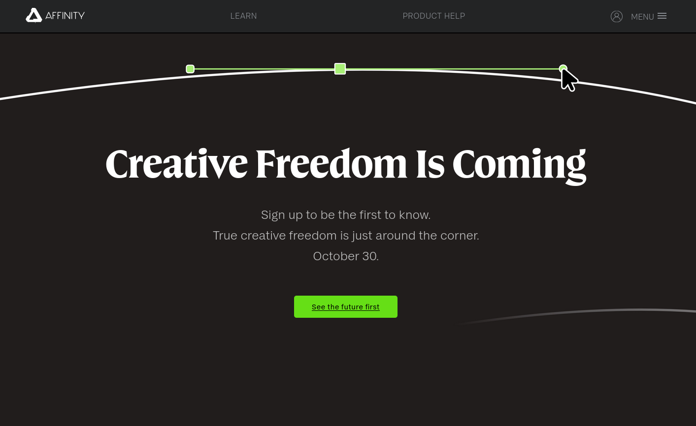 A Serif Affinity Photo és Designer nagyszerű alternatívája a Photoshopnak és az Illustratornak azok számára, akik a folyamatos előfizetés helyett inkább egy egyszeri, örökös licencért fizetnének. Nemrégiben azonban a Serif offline állapotba hozta az Affinity szoftveráruházat, és a helyettesítette a céloldalt egy üzenettel, amely így szól:"Az igazi kreatív szabadság már csak a sarkon túl van", valamint egy október 30-i indulási dátummal és egy bejelentő hírlevélre mutató linkkel.