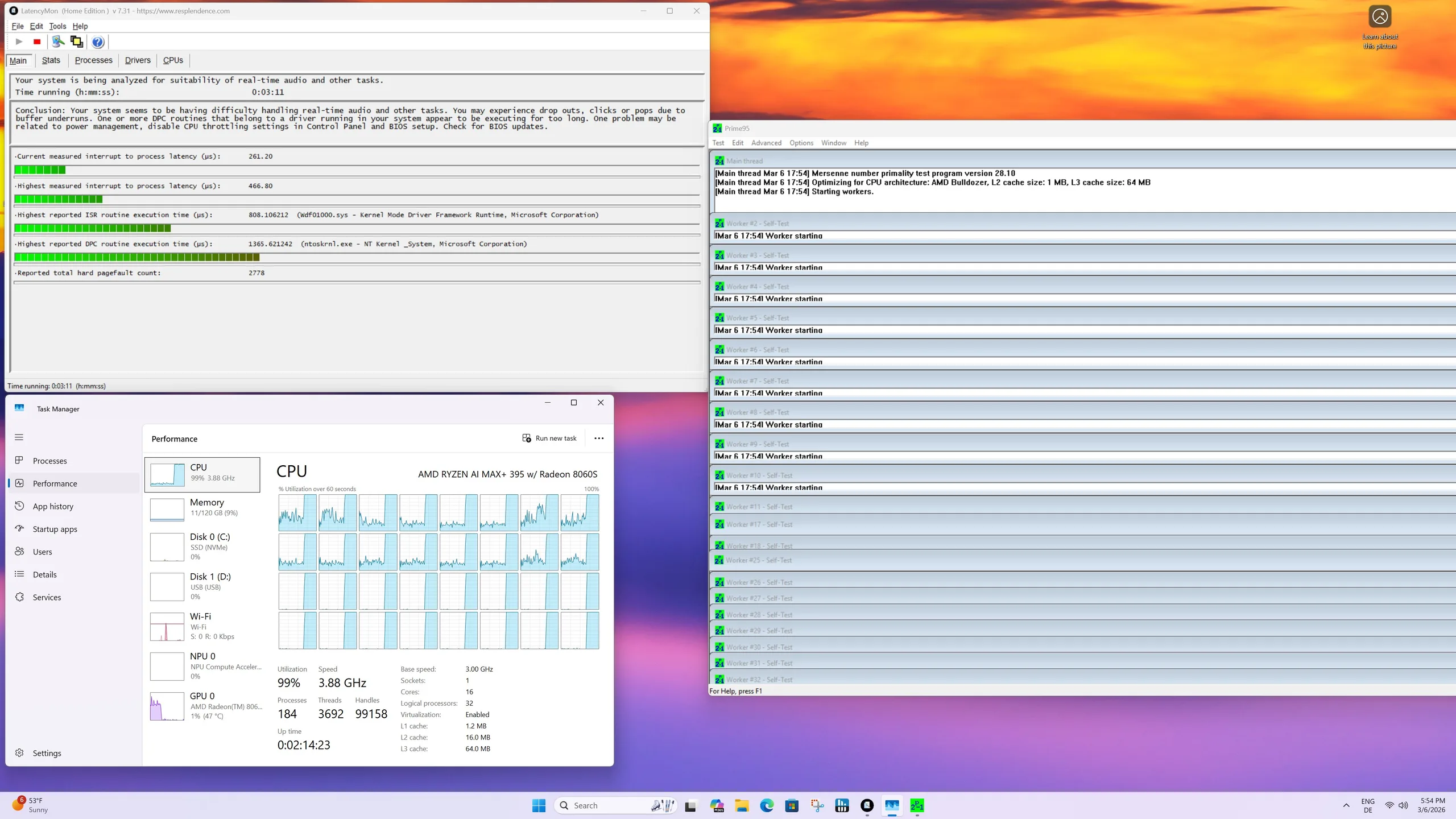 Az erőteljes hűtés ellenére tesztkészülékünk nem igazán tudja felvenni a versenyt a Minisforum MS-S1 Max-szal, tud lépést tartani. A gyártó az AMD Ryzen AI Max+ 395-nek nagyobb teljesítménykeretet engedélyez, ami átlagosan alig több mint tíz százalékos teljesítményelőnyt eredményez.