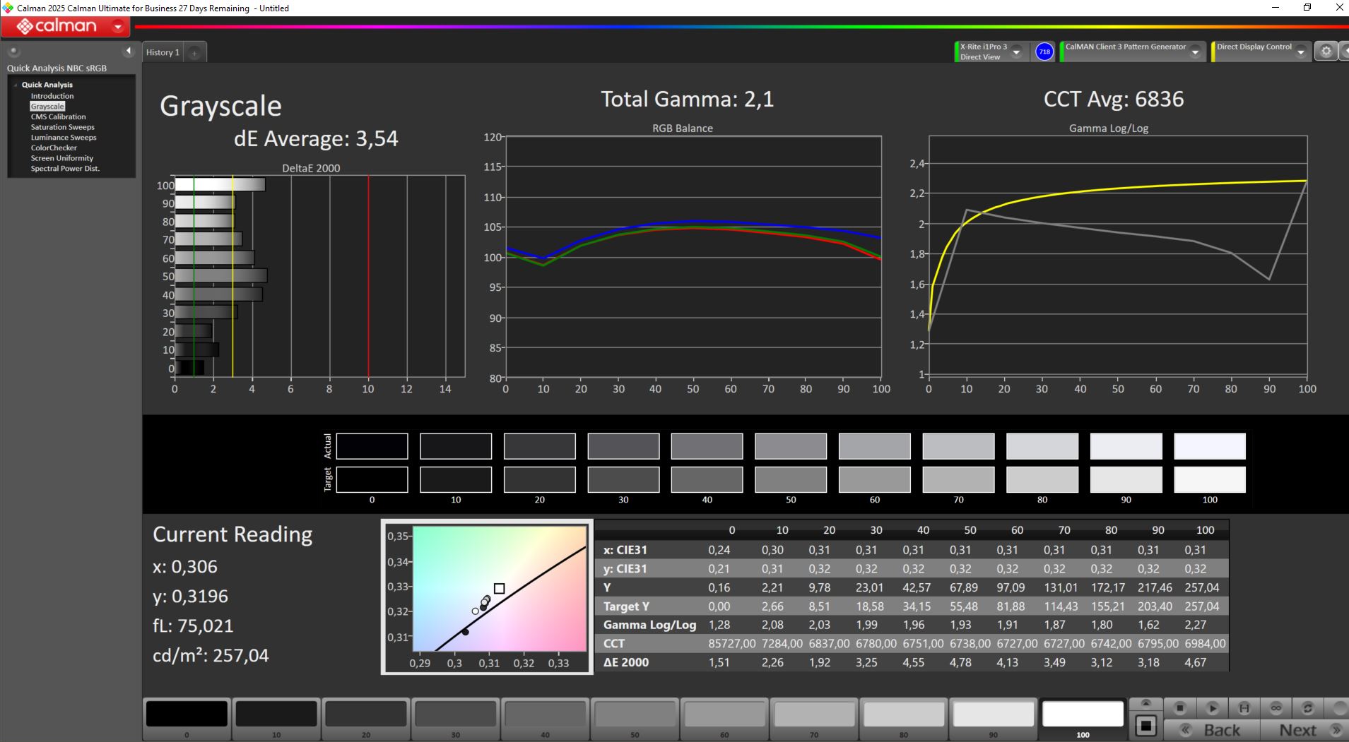 ΔE Greyscale Calman: 3.54 | ∀{0.09-98 Ø5}