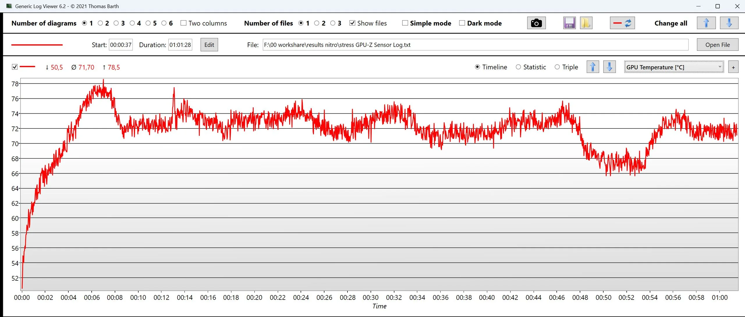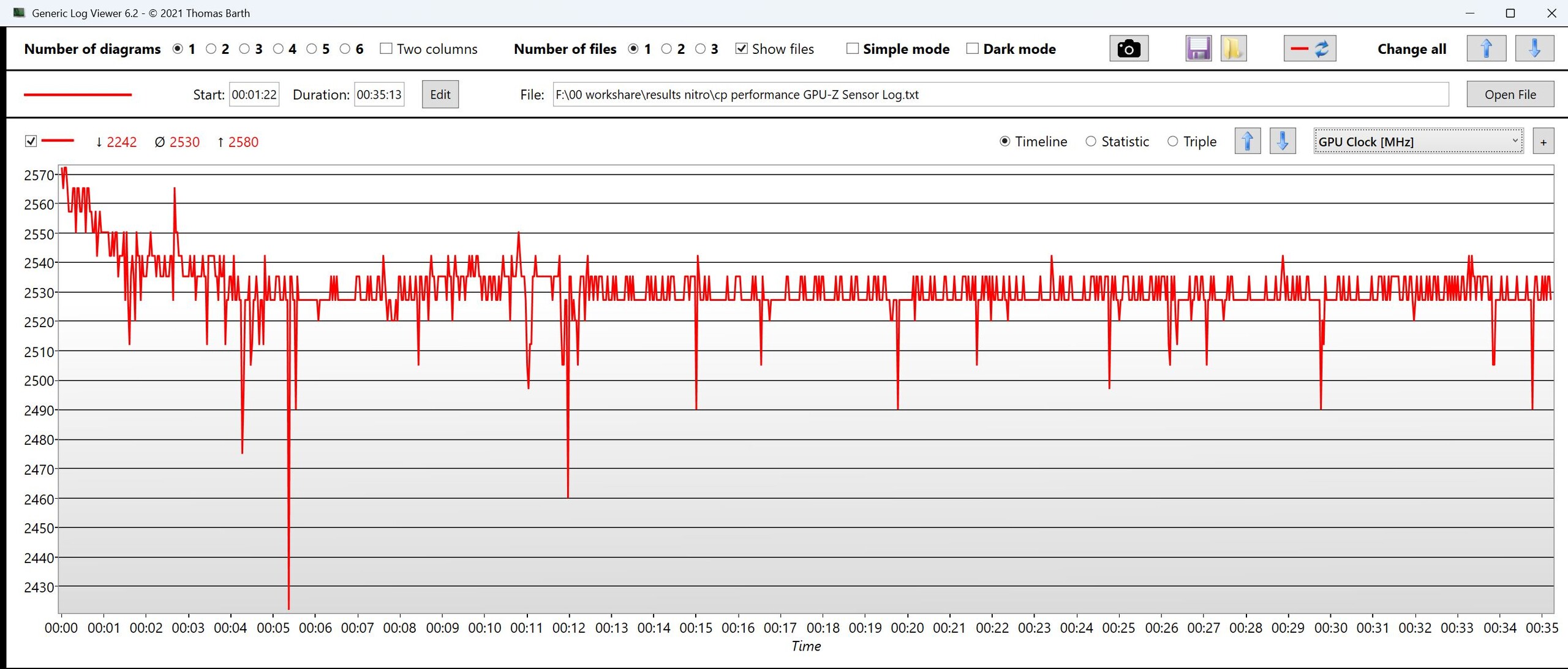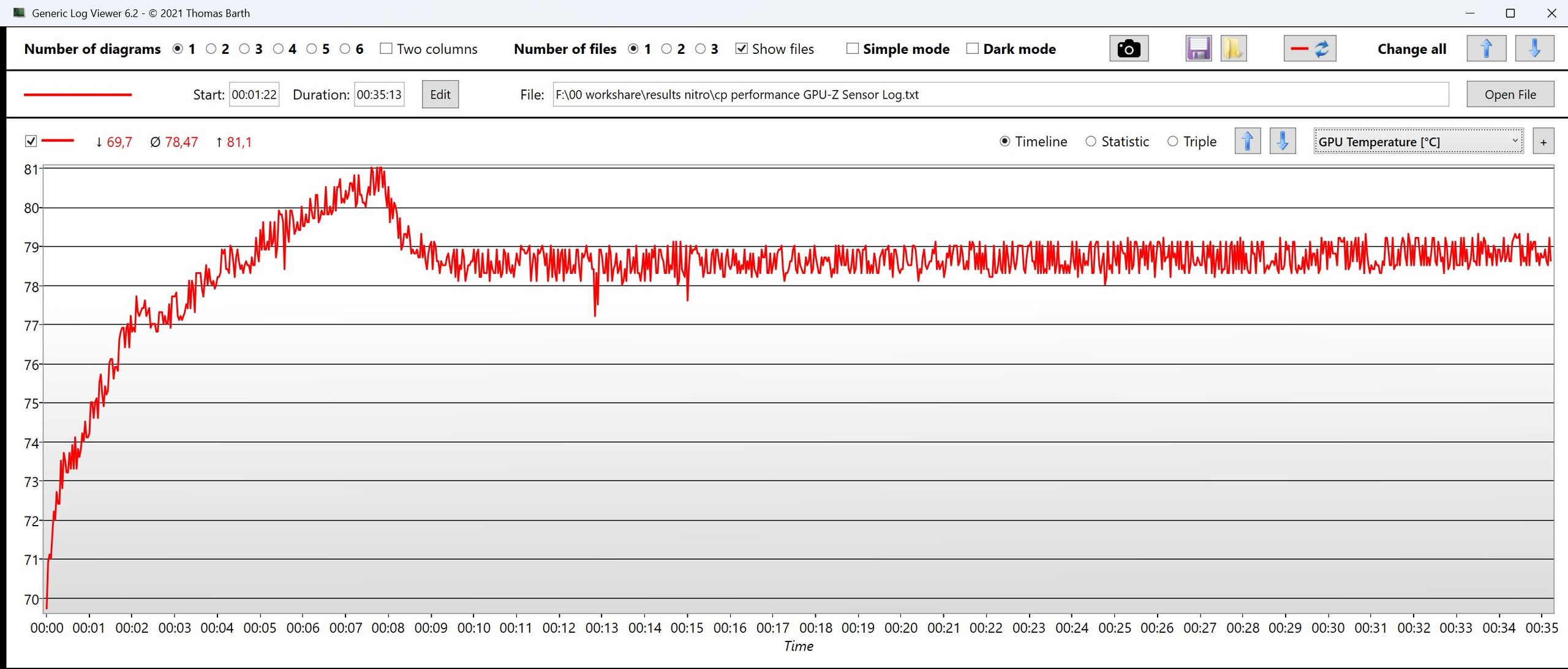 | CPU órajel (GHz) | GPU órajel (MHz) | CPU átlaghőmérséklet (°C) | GPU átlaghőmérséklet (°C) | |