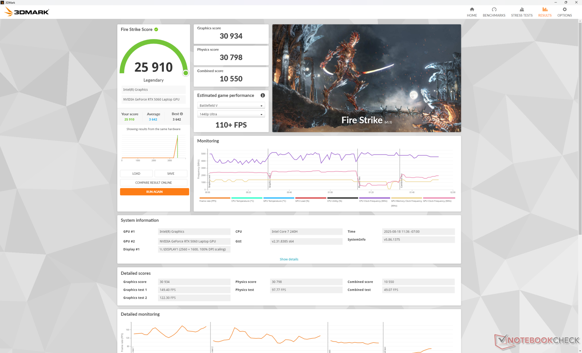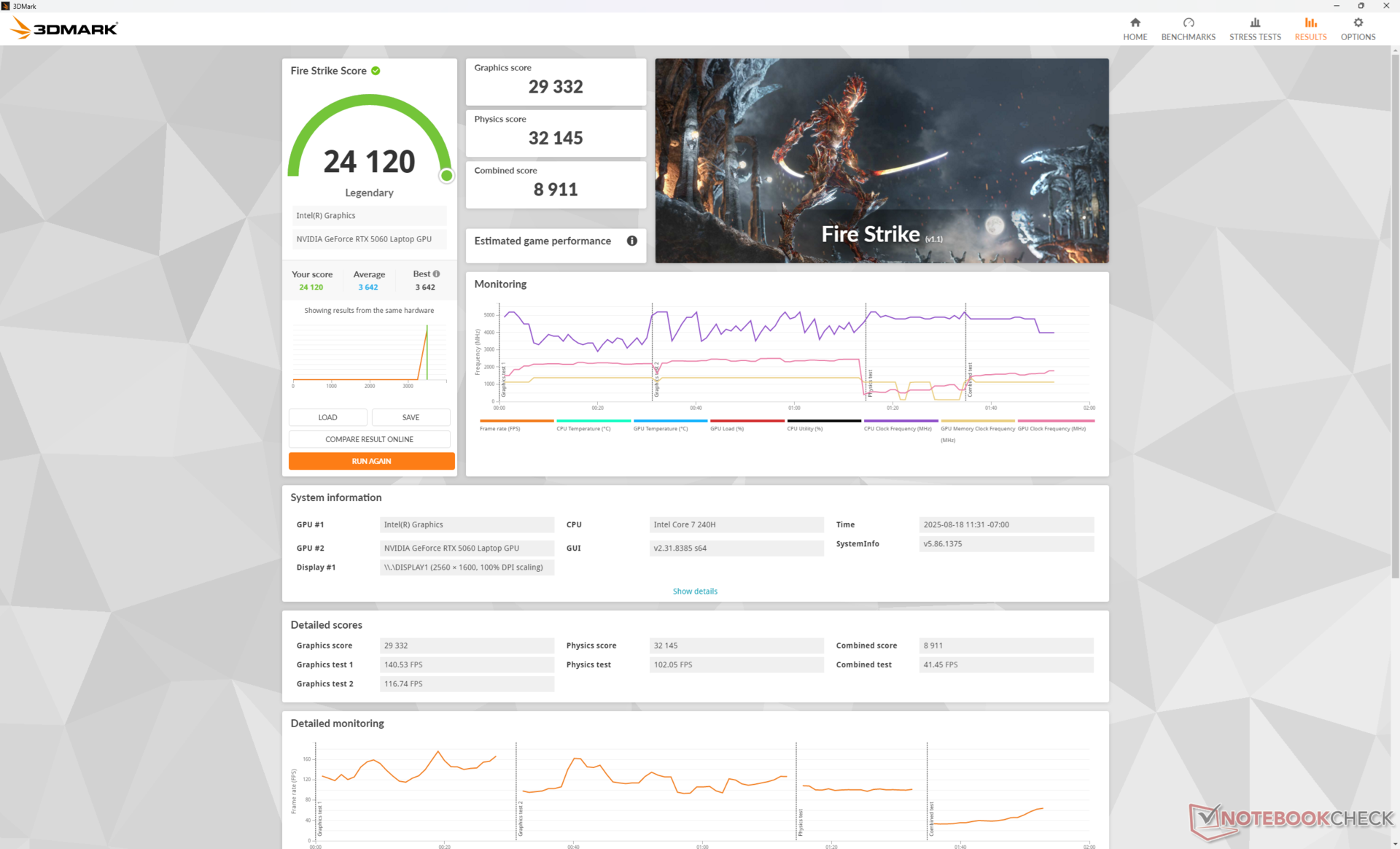 Ami a játékképességeit illeti, a 16 Aurora nehezen tud igényes címeket futtatni natív 2K felbontáson, mivel a mobil RTX 5060 GPU inkább 1080p-re van kihegyezve. A DLSS és a képkocka generálás engedélyezése alacsonyabb beállítások mellett kulcsfontosságú az RTX 5060 GPU-ban rejlő lehetőségek maximalizálásához. Ellenkező esetben a játékteljesítmény csak marginális javulást jelent a régebbi RTX 4060 opciókhoz képest.