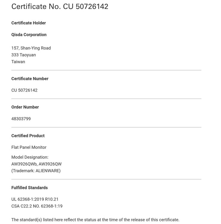 Konkrétan egy nemrégiben kiadott TÜV Rheinland tanúsítványból kiderült, hogy a Dell kifejlesztett egy új Alienware monitort, amely az AW3926QW modellszámot viseli. Az Alienware elnevezési sémája alapján az AW3926QW egy 39 hüvelykes monitor. Ebben az értelemben az AW3926QW lényegesen nagyobb lesz, mint a AW3425DW, amelyet a Dell alig több mint egy évvel ezelőtt dobott piacra világszerte.