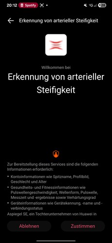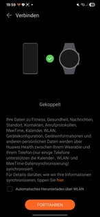 A tesztelés során az okosórát azonnal felismerte és gond nélkül párosította. A telepítés során több engedélyt is meg kell adni. Egy Huawei azonosítóra is szükség van. A folyamat végén egy oktatóprogram indul el az órán. Egy dolog feltűnő: minden, az okosórán megnyitott alkalmazás külön adatfeldolgozási hozzájárulást igényel.