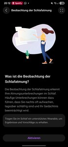 Az óra nyomon követi a mélyalvás folyamatosságát, a légzés minőségét, a pulzusszámot, az oxigéntelítettséget és a légzésszámot is. Az alvási hangok érzékeléséhez párosított okostelefonra van szükség a közelben. A teljes alvást egy pontszám és egy csillagrendszer segítségével értékelik, a szoftver pedig elemzéseket és ajánlásokat ad az alvásminőség javítására.