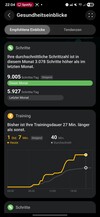 Az Egészség alkalmazás öt részre van osztva: Egészség, Edzés, VIP, Eszközök és Fiók. Az Egészség fül az összes rögzített biometrikus adat műszerfalaként működik, amely testreszabható csempék formájában jelenik meg.