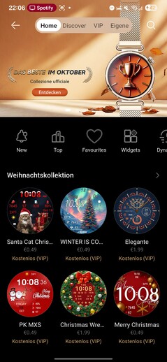 A befejezett edzések az Edzés alatt jelennek meg. A VIP hozzáférést biztosít a fizetős Plus szinthez. Az Eszközök fül tartalmazza a beállításokat, az AppGalériát, a zenekezelést és az óraszámlapok széles választékát.