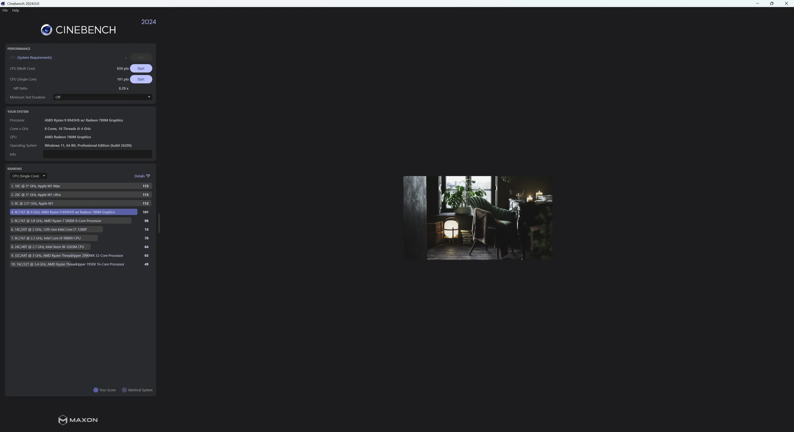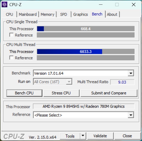 Az Alliwava GH8 AMD Ryzen 9 8945HS (Zen 4, 8 mag és 16 szál) AMD Ryzen 9 8945HS-szel összességében nagy számítási teljesítményt kínál, és a jelenlegi mini PC-k erős középkategóriájában helyezkedik el. A SoC rövid távon akár 65 watt körüli fogyasztást is elérhet, de tartós terhelés esetén 55 watt körül stabilizálódik. Közvetlen összehasonlításban azonban tesztpéldányunk alulmarad a Geekom A8-cal szemben, amely egy feltételezhetően gyengébb AMD Ryzen 7 8745HS-szel van felszerelve.