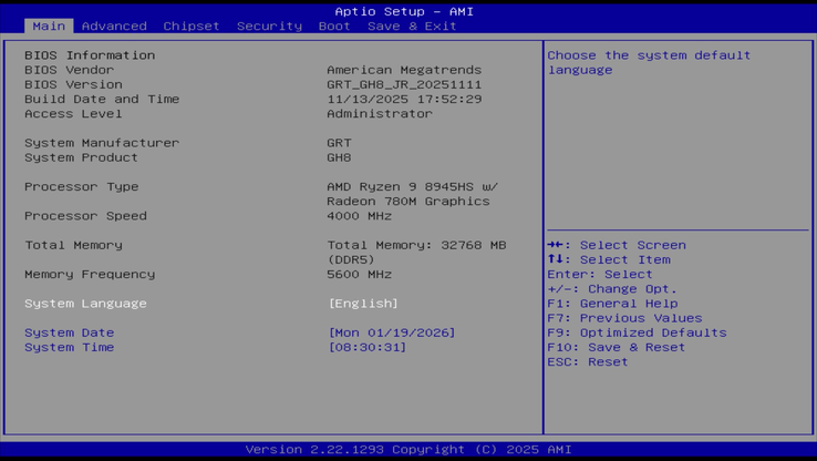 Az Alliwava GH8-zal a gyártó egy nagy teljesítményű mini PC-vel bővíti portfólióját, amely kompakt méretei ellenére modern csúcskategóriás hardverre támaszkodik. Belsejében az AMD Ryzen 9 8945HS a Zen 4 architektúrára épül, amely 8 maggal és 16 menettel célozza meg a felhasználókat. Az itt vizsgált konfigurációban a rendszer 32 GB RAM és egy 1 TB-os SSD áll a rendelkezésére, ami szilárd alapot teremt a kiegyensúlyozott teljesítményfejlesztéshez.