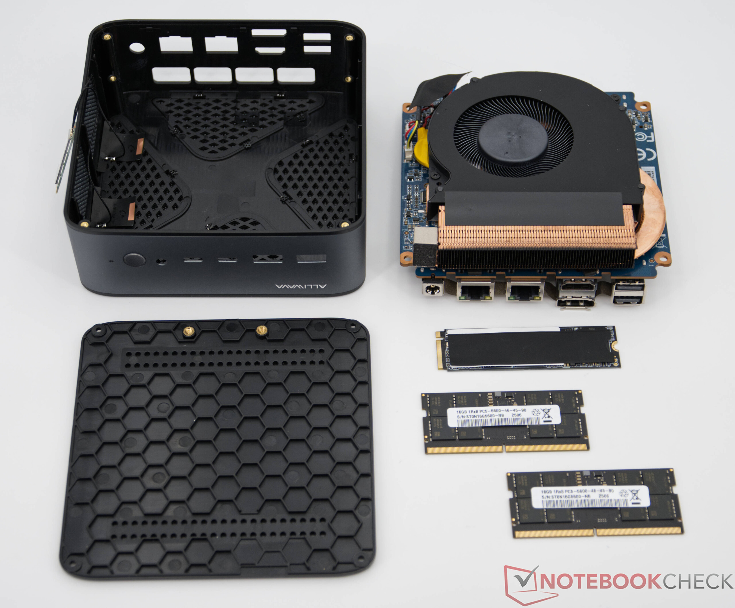 Az Alliwava GH8 gyárilag RAM-mal és SSD-vel felszerelve érkezik, így azonnal használatra kész. A ház könnyen kinyitható a későbbi frissítésekhez, a RAM, a tömegtároló és a WLAN-modul könnyen hozzáférhető és cserélhető.