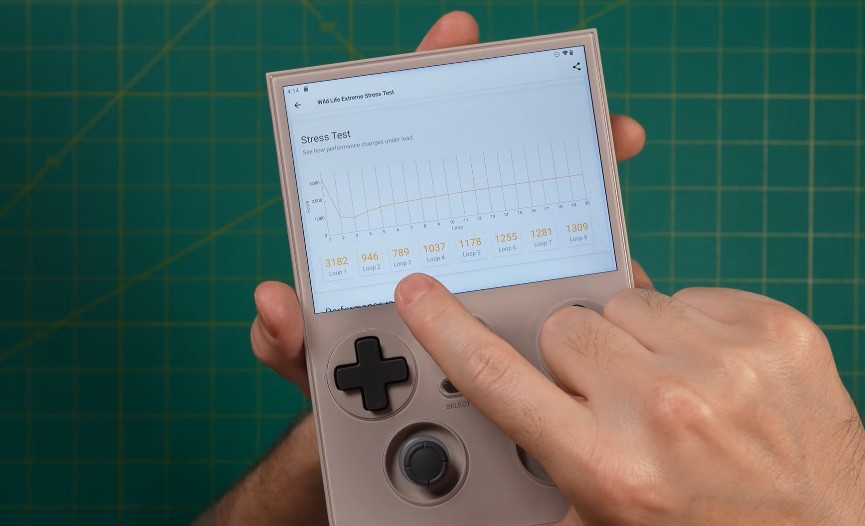 Russ megjegyezte, hogy az Anbernic RG477V-nek volt egy teljesítményproblémája, ami miatt a készülék nagy teljesítményű üzemmódban nagyon felmelegedett, elérve a 105 °C-ot. A Wild Life Extreme Stress tesztet is elbukta, az első kör után jelentősen leesett. Miután azonban az Anbernic értesítette a problémát, kiadtak egy OTA-t a készülékhez, amely kijavította a problémát (teljesítmény üzemmódban). Teljesítmény szempontjából az RG477V állítólag közel áll az Ayaneo Pocket DMG-hez, amely közel kétszer annyiba kerül.