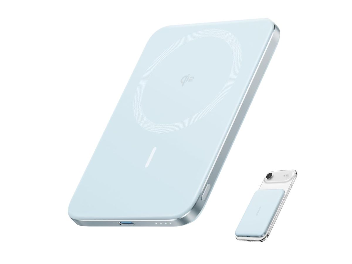 Az Anker Nano Power Bank (5K, MagGo, Slim) kék változata megegyezik a másik négy változattal. Ez a hordozható töltő kiegészítő két kimenetet kínál. Az első egy Qi2 tanúsítvánnyal rendelkező vezeték nélküli töltőpad, amely akár 15 W-ot is képes leadni egy kompatibilis okostelefonra. Az Anker szerint ez feltöltene egy iPhone 17 25%-ra alig több mint fél óra alatt. A második kimenet egy USB-C port, amely akár 20W-os teljesítményt is kínál.