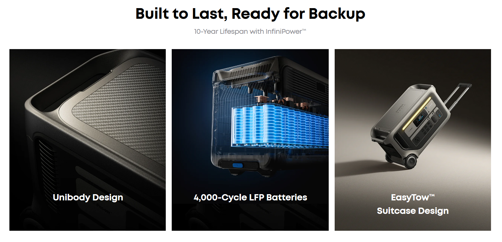 Az Anker Solix F3000 egy igazi vadállat, 41,5 kg-os súlyával és körülbelül 65 x 30 x 37 cm-es méreteivel, de kerekei és teleszkópos fogantyúja viszonylag könnyen mozgathatóvá teszi. Rengeteg kapacitást kínál a 3072 Wh-s LFP akkumulátorral és rengeteg energiát a 3600 W-os folyamatos teljesítményével a négy konnektoron keresztül. Ez lehetővé teszi, hogy a különböző eszközöket a hálózatról függetlenül is ellássa árammal, például áramszünet idején vagy kempingezés közben. Ha ez a kapacitás nem lenne elég, akár három további BP3000 akkumulátorral maximum 12 kWh-ra bővíthető.