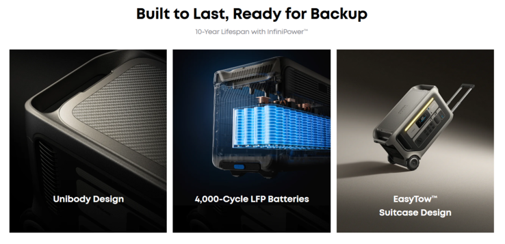 A szünetmentes áramellátást biztosító UPS funkció mellett az Anker Solix F3000 különböző, akár 100 W-os USB-portokat és egyéb csatlakozókat kínál a tipikus módon. A nagy teljesítményű erőművet akár 2400 W-os teljesítményig napelemeken keresztül, vagy legfeljebb 1800 W-os teljesítményig a hálózaton keresztül lehet tölteni