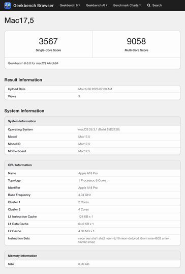 Apple csak március 11-én kezdi meg a MacBook Neo szállítását. A személyes eseményen bejelentett új 13 hüvelykes MacBook már előrendelhető 599 dollárért harmadik féltől , például az Amazontól, miután március 4-én debütált. Miközben várjuk az első független értékeléseket, a Geekbench nyújtott néhány betekintést a teljesítménybe, amire a Apple's first A18 Pro-processzoros és GPU-s terhelésű munkaterhelésekben.
