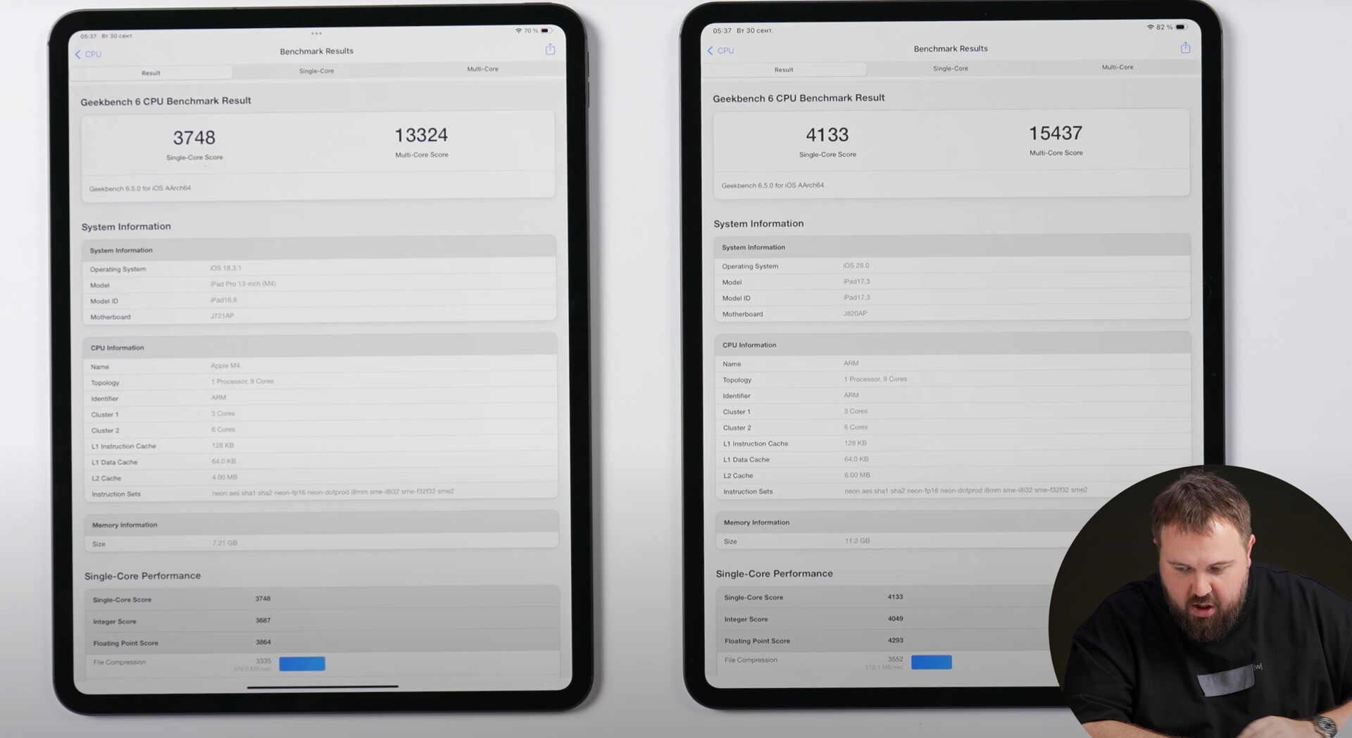 Az iPad Pro 13 továbbra is 256 GB-os tárhellyel fog indulni szintén, akárcsak elődje. Ezzel együtt a Apple ezt az alapkonfigurációt 8 GB-ról 12 GB RAM-ra frissítette, amit egy kísérő Geekbench listázás támogatja. Sajnos marad a 9 magos chipset, három teljesítménymaggal a négy helyett, ami valószínűleg a Apple M5 MacBook verziókban található négy mag helyett.