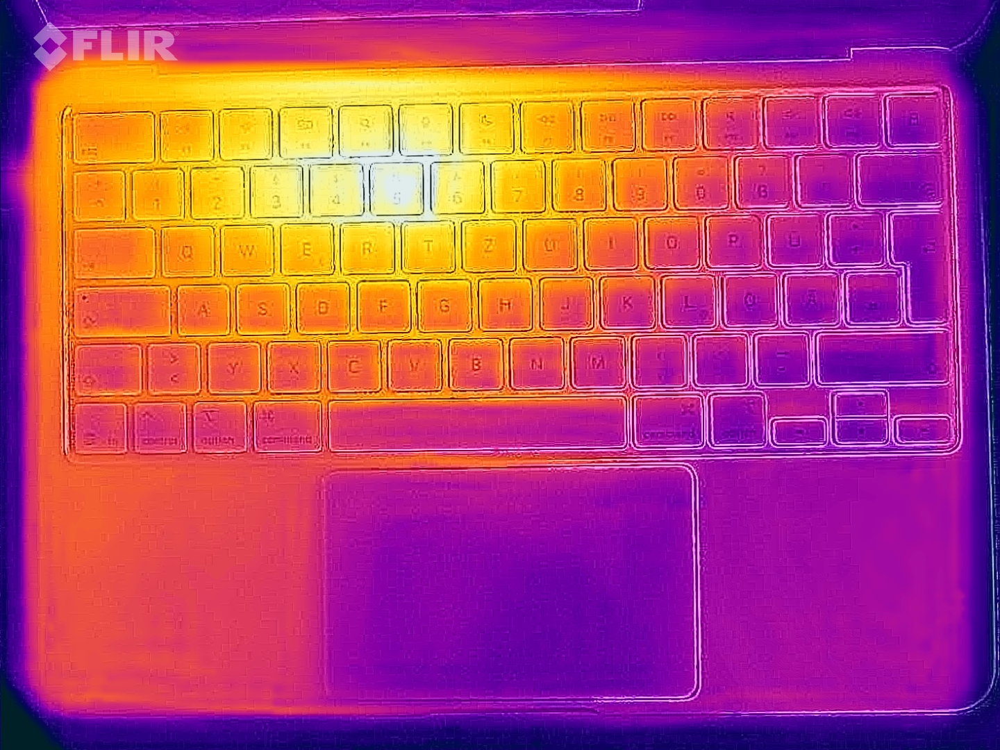 (+) 3: The average temperature for the upper side is 31 °C / 88 F, compared to the average of 30.8 °C / 87 F for the class Subnotebook.