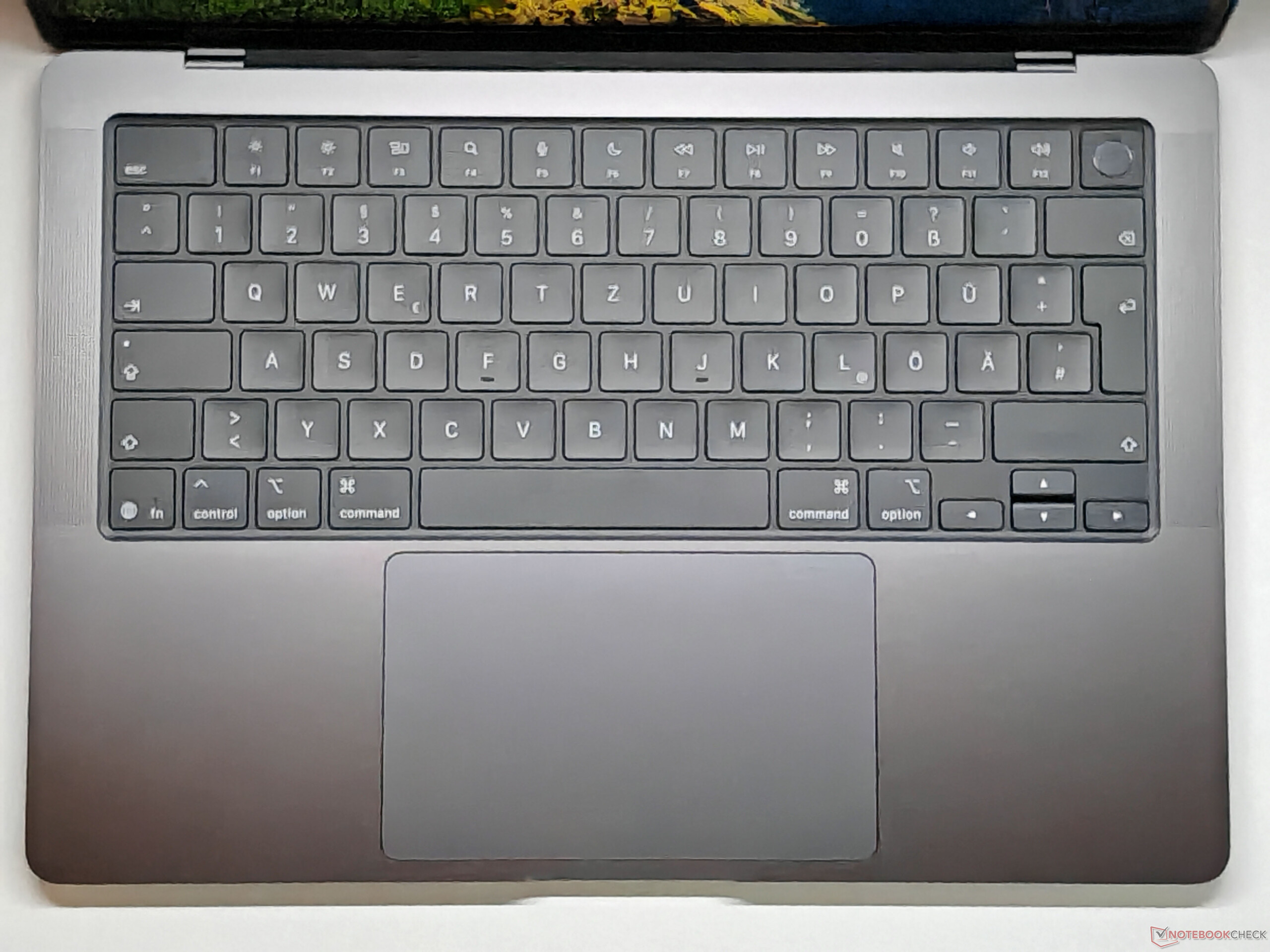Apple továbbra is a jól ismert Mini LED panelre támaszkodik. A vásárlók választhatják a matt változatot is (+150 $), amely tesztünk során rendelkezésünkre állt. A képminőség minimálisan szenved a matt felület miatt, és a színek nem egészen olyan ragyogóak, de cserébe világos környezetben is dolgozhatsz anélkül, hogy idegesítő tükröződésekkel kellene megküzdened. A Mini LED-es háttérvilágítás folyamatosan villog, igen magas, alig 15 kHz-es frekvencián, így az érzékeny felhasználók számára nem okozhat gondot. Sajnos a villogás miatt nem tudtuk pontosan meghatározni a képernyő válaszidejét, így mérési eredményeink csak korlátozottan mérvadóak. A 120 Hz-es képfrissítési frekvenciával együtt a látható szellemképekkel egyáltalán nincs probléma.