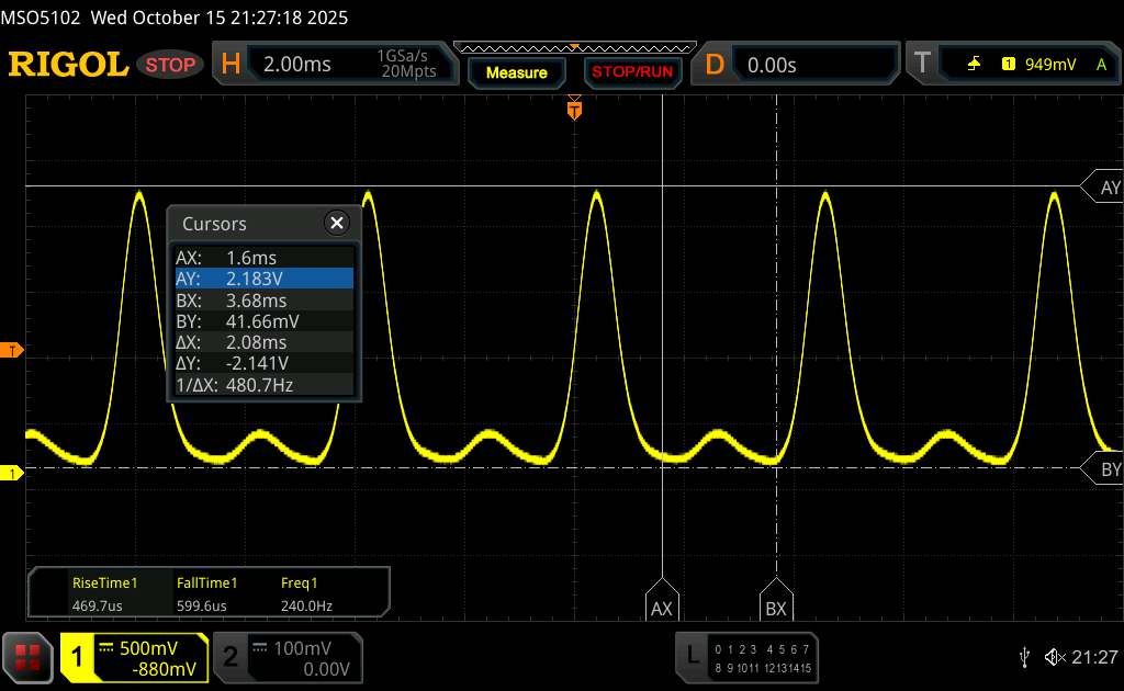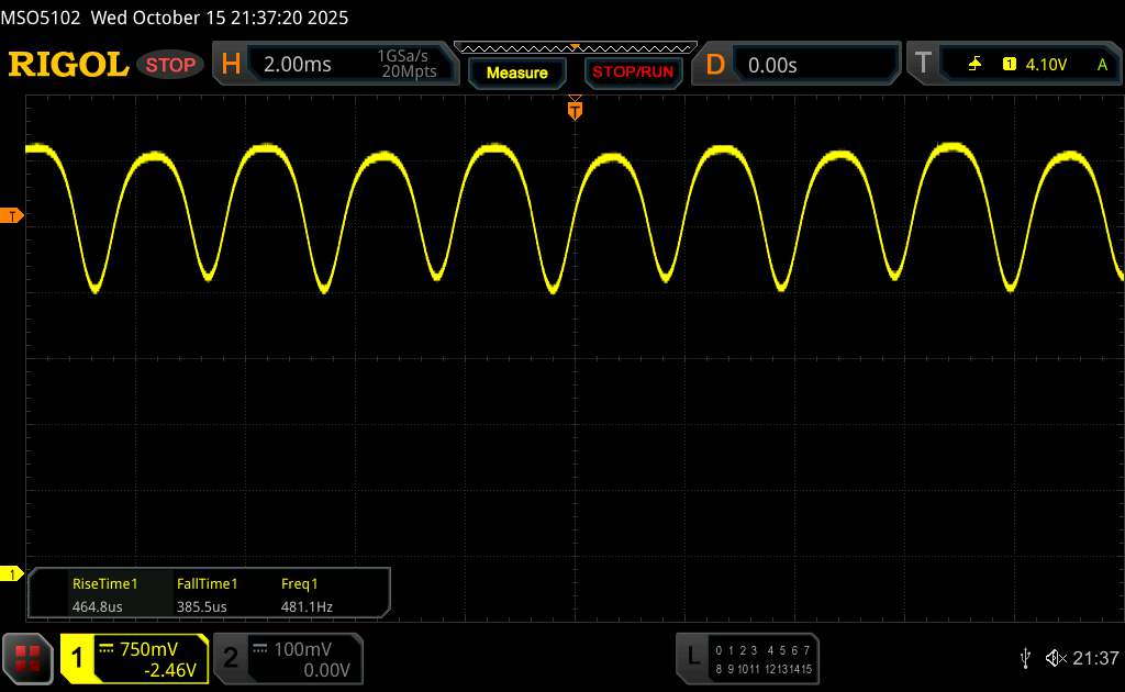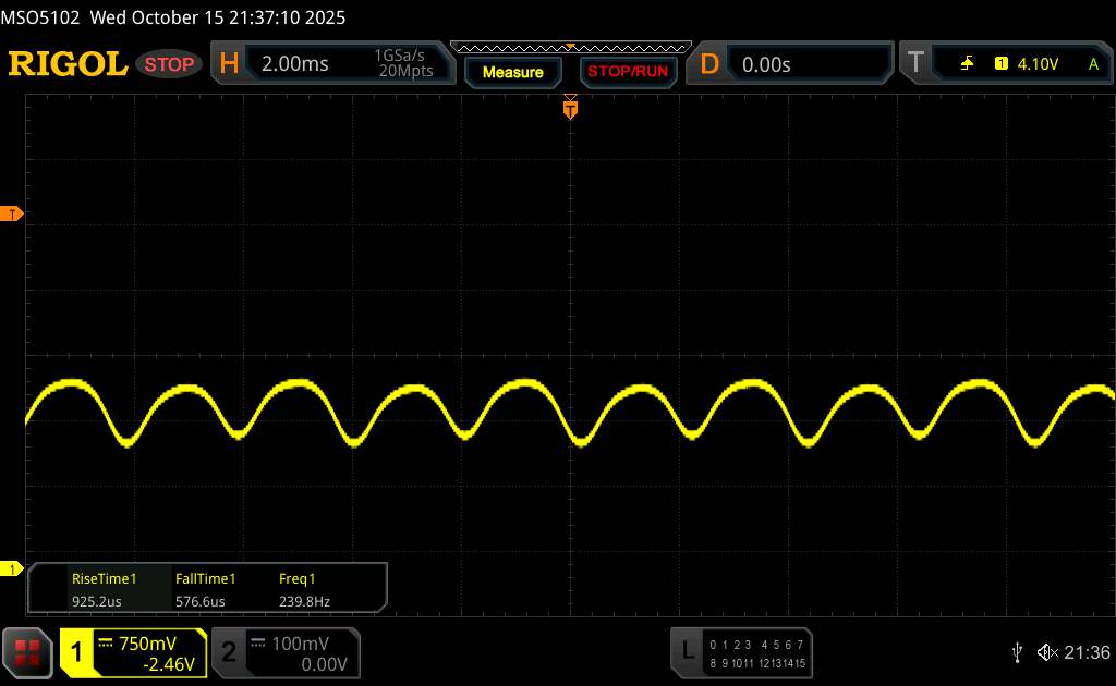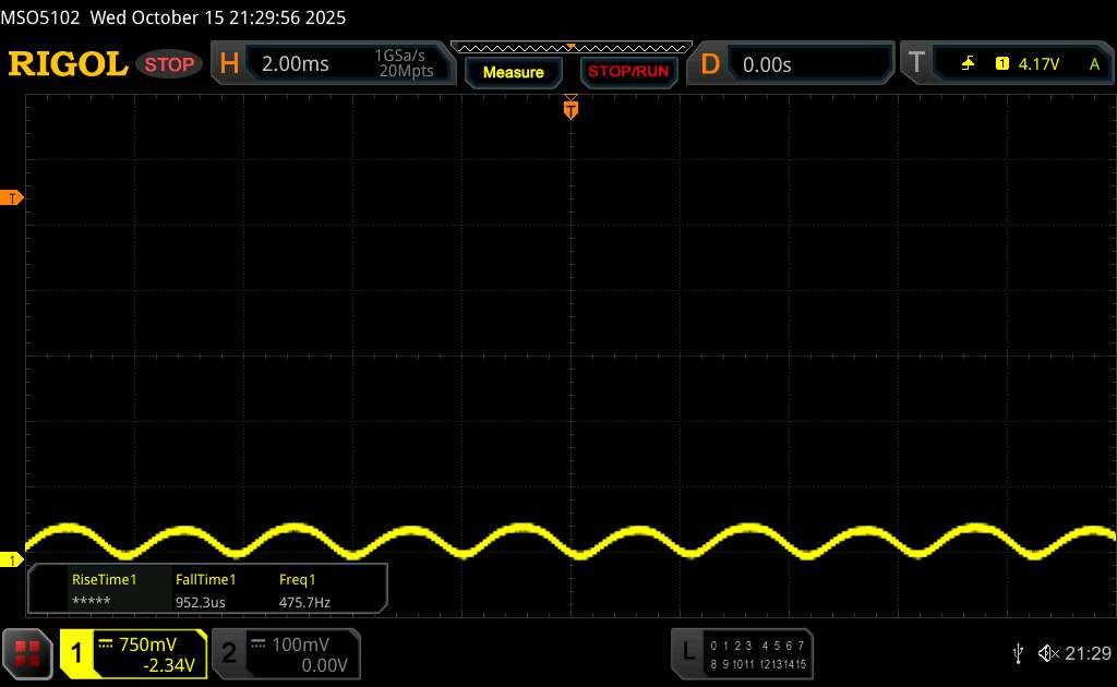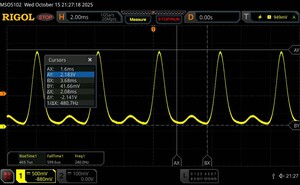 (+) | a csúcsok lineárisak (1.4% delta az előző frekvenciához képest)