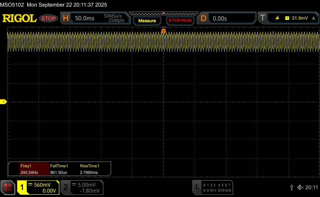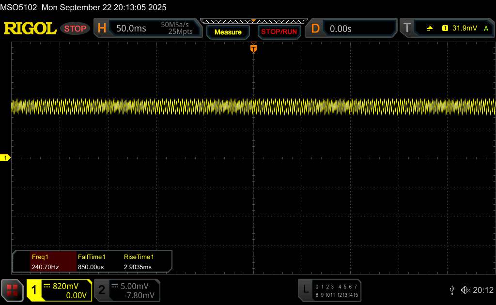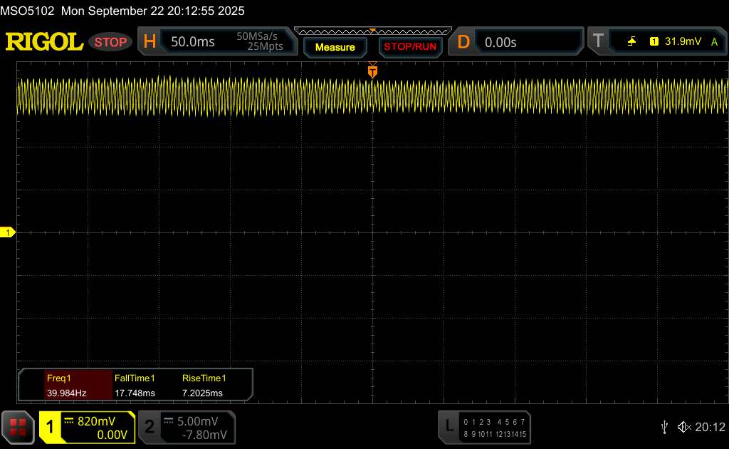 (+) | a csúcsok lineárisak (2% delta az előző frekvenciához képest)