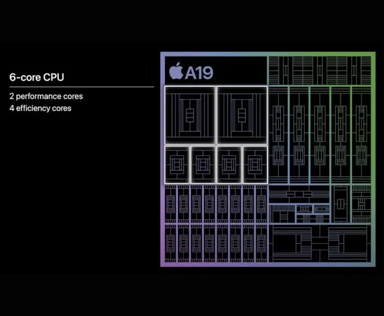 A processzor a legmeglepőbb pletyka. A iPhone 17e várhatóan A19-es chippel kerül forgalomba, amely a Apple2025-ös zászlóshajó modelljeiben is megtalálható. A korai technikai bontások szerint a A19 hasonló építészeti fejlesztéseket tartalmaz, mint az A19 Pro, csak eggyel kevesebb GPU-maggal.