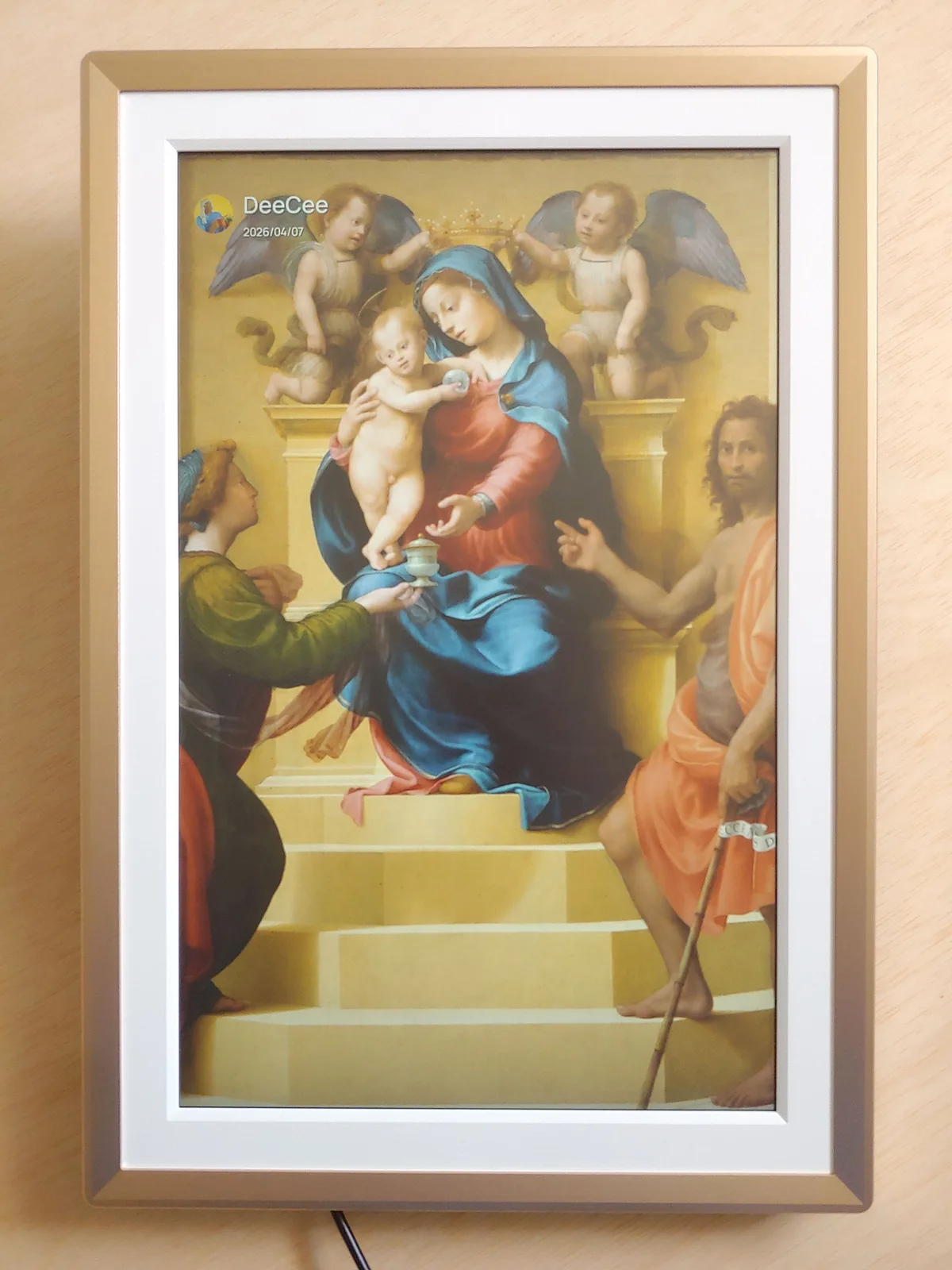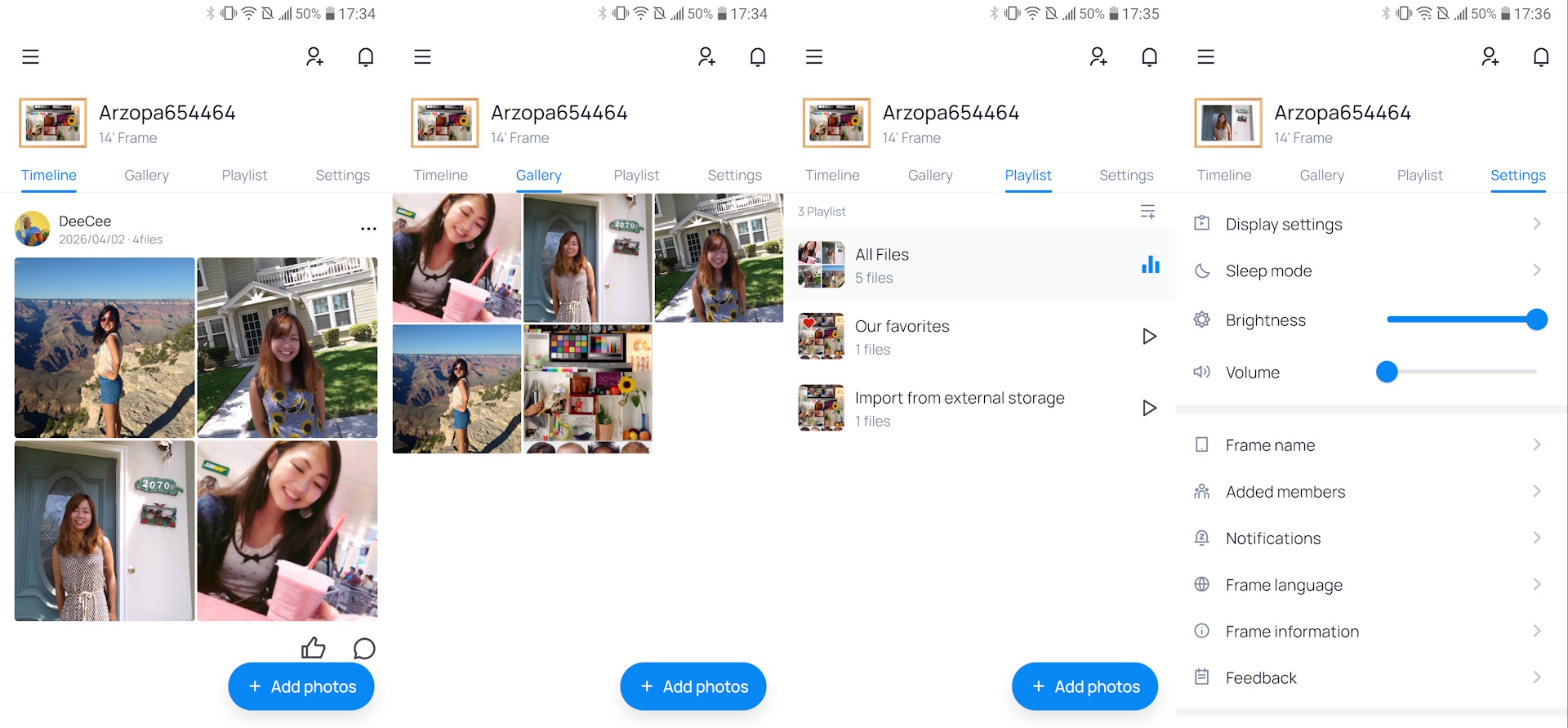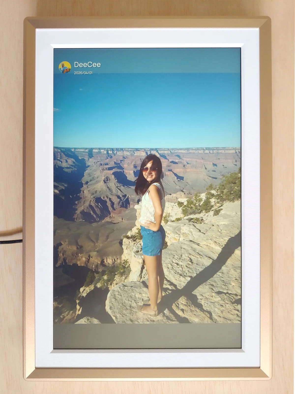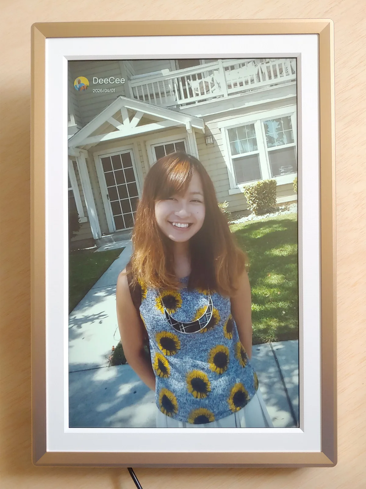 Az Arzopa D14 digitális képkeret a felhőben tárolt képek végtelen sorát jeleníti meg, és a barátok és a családtagok távolról is hozzáadhatnak új képeket.