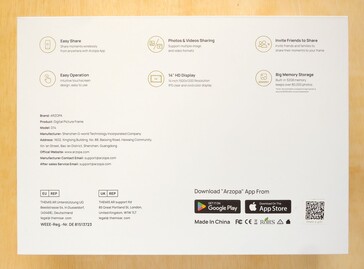 Az Arzopa D14 korlátlan felhőalapú tárhelyet kínál, megosztott fiókokkal, amelyek segítségével a barátok és a családtagok bárhonnan hozzáadhatnak fényképeket. Az SD-kártyahely és az USB-port támogatja az offline átvitelt is.